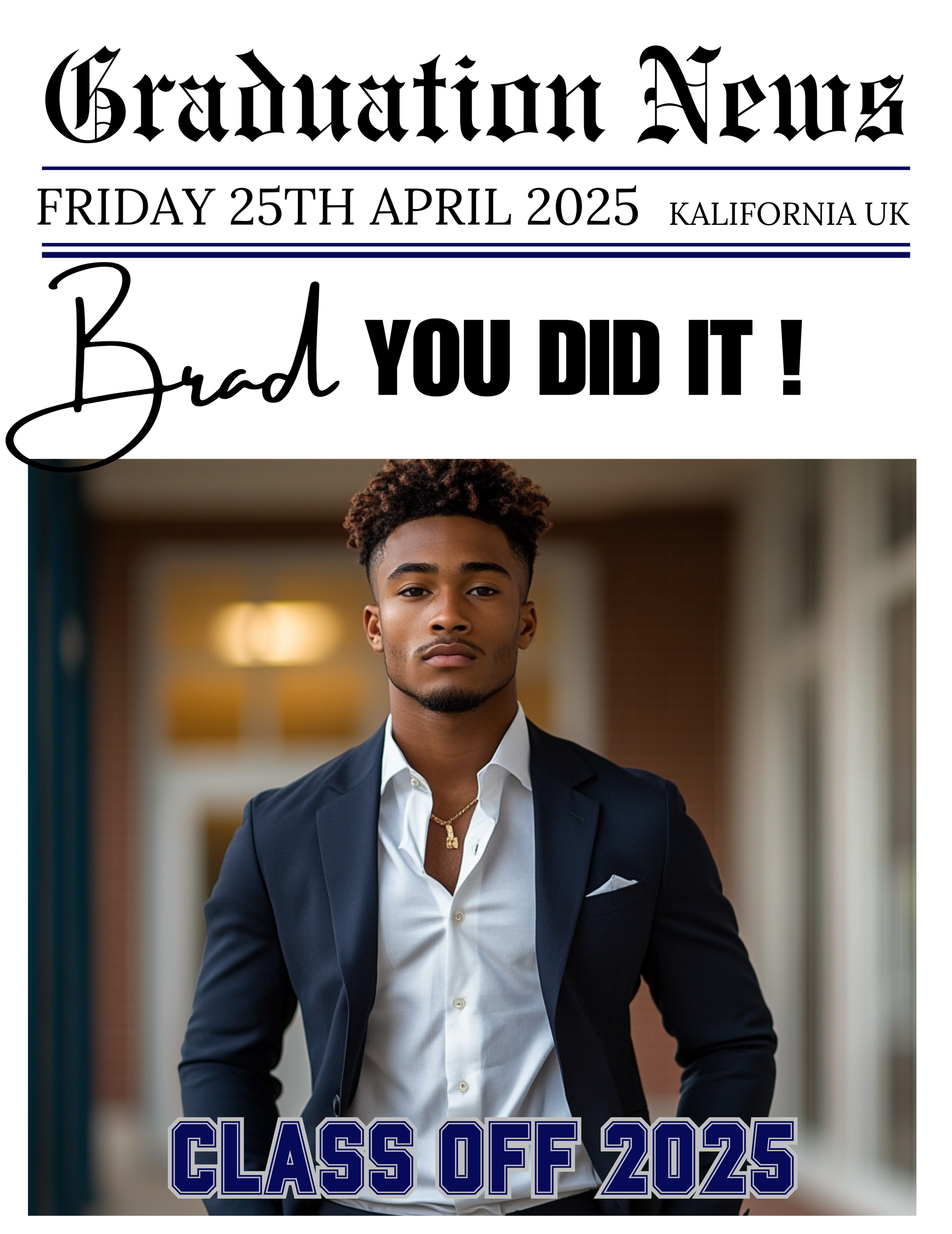 Make your graduation announcement stand out with this beautifully designed, customizable Graduation Newsletter Cover! Perfect for highlighting your graduate's achievements, sharing their journey, and announcing upcoming celebrations, this cover adds a polished, professional touch to your graduation keepsake or event program.