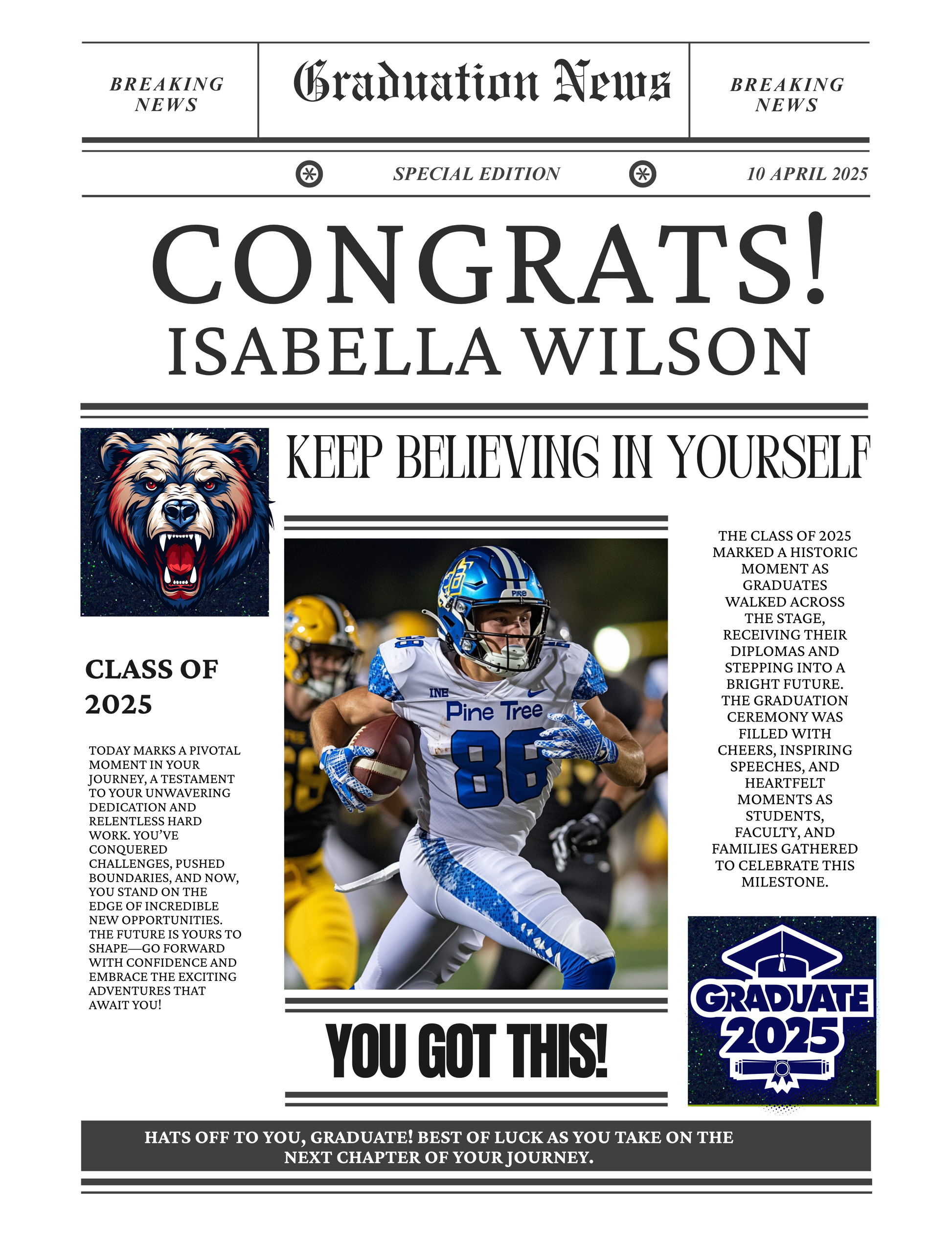 Whether showcasing your senior’s milestones or creating a memory-filled newsletter for the whole class, this cover is the perfect way to make it unforgettable.